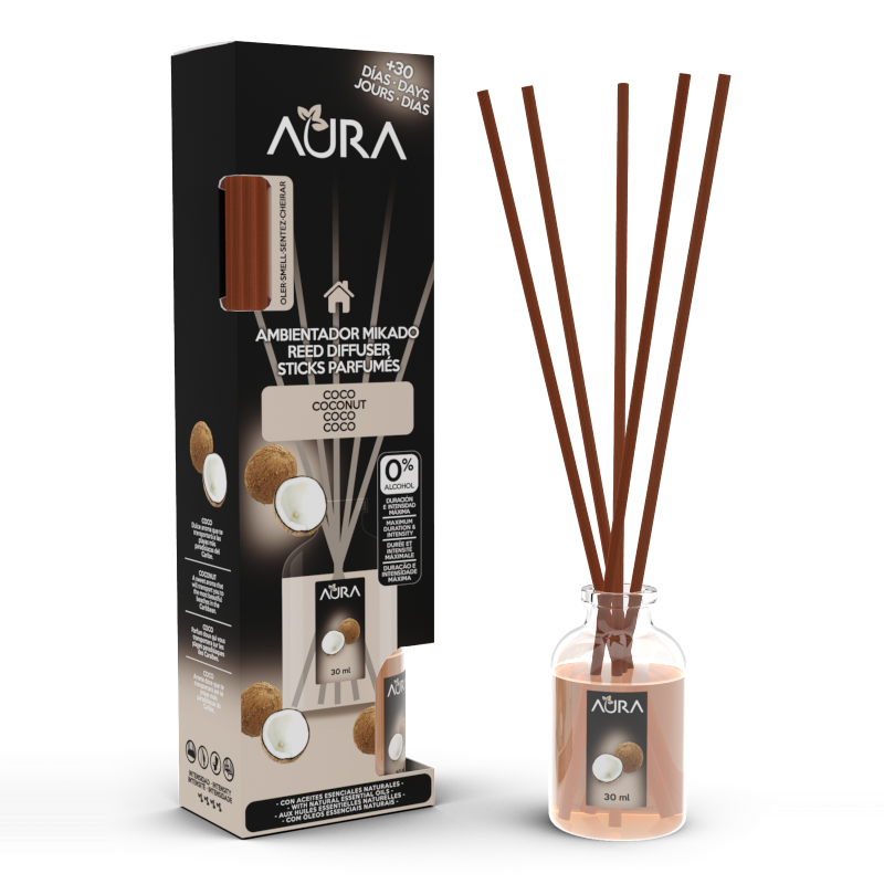 Glæsilegur Mikado ilmdreifir í sívalri glerflösku með klassískri og tímalausri hönnun. Hann fyllir heimilið af hlýjum og sætum kókosilm. Kókosinn blandast léttum tónum af sítrónu, túberósu og vanillu, sem skapa róandi, suðrænt andrúmsloft og gera hvert rými notalegt og afslappandi.