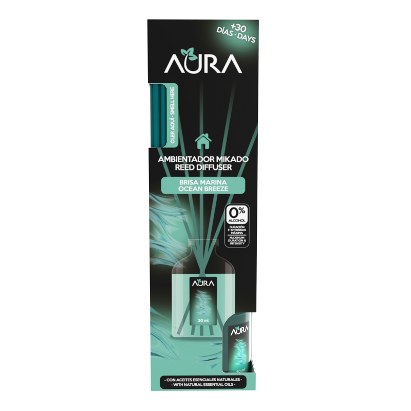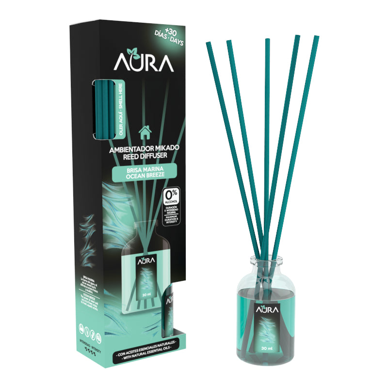 Ocean Breeze Glæsilegur Mikado ilmdreifir í sívalri glerflösku með klassískri og tímalausri hönnun. Hann fyllir heimilið af ferskum og náttúrulegum ilm og bætir notalegu andrúmslofti við hvaða rými sem er. Helstu eiginleikar: